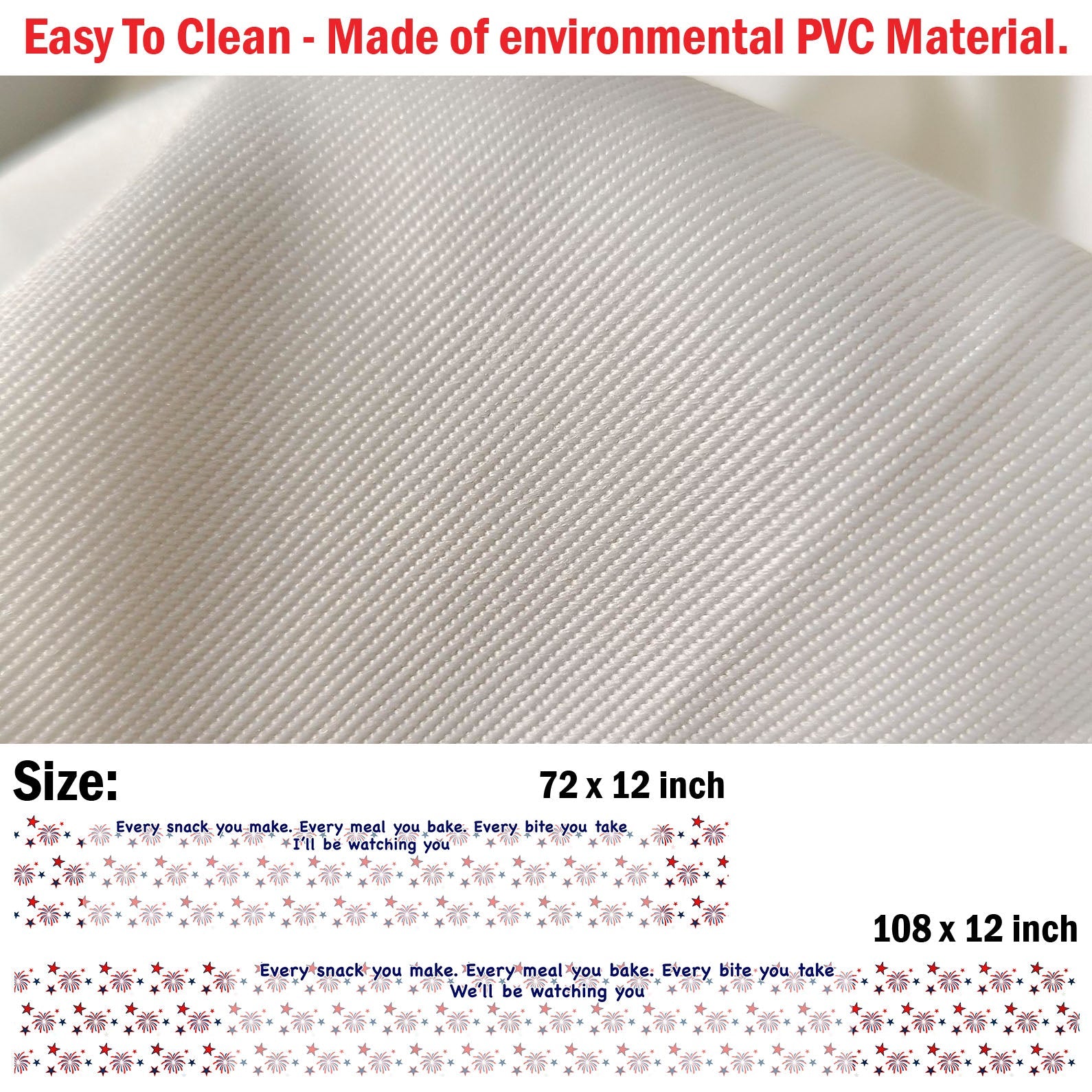 108 x 12 inches - Easy To Clean: Made of environmental PVC Material. Machine washable. In order to minimize shrinkage, dry it at low temperature and take it out before it is completely dry.