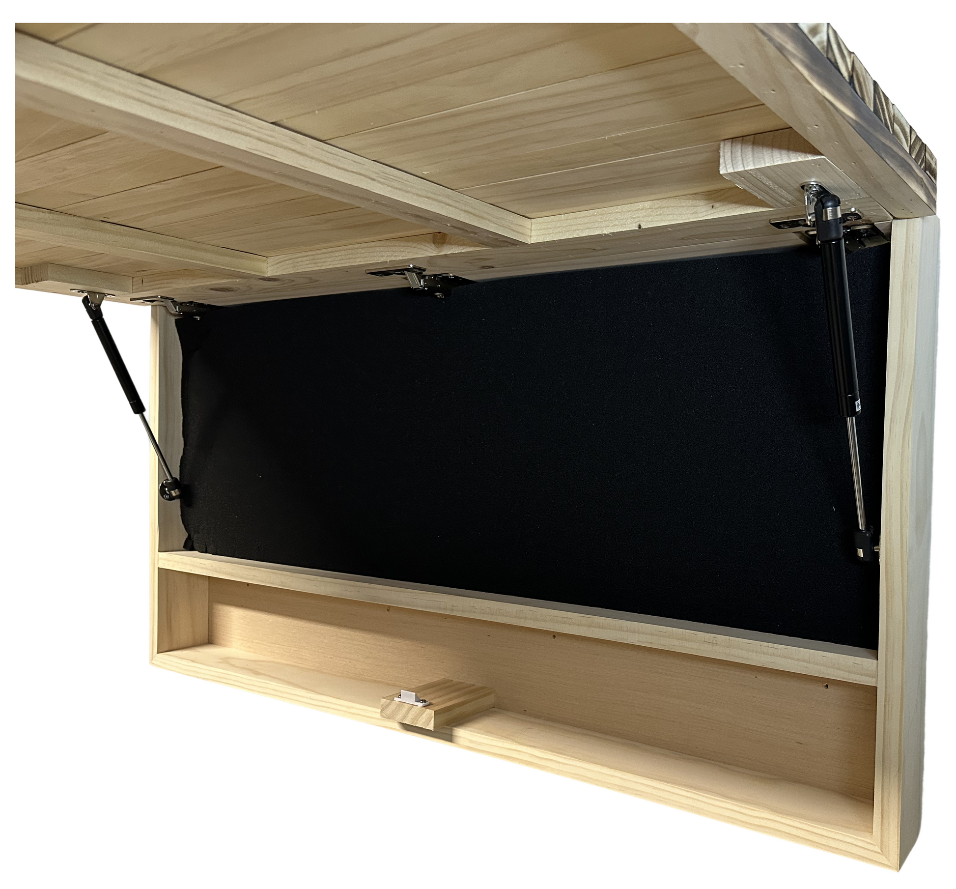 - Concealed storage appears as decorative patriotic wall art